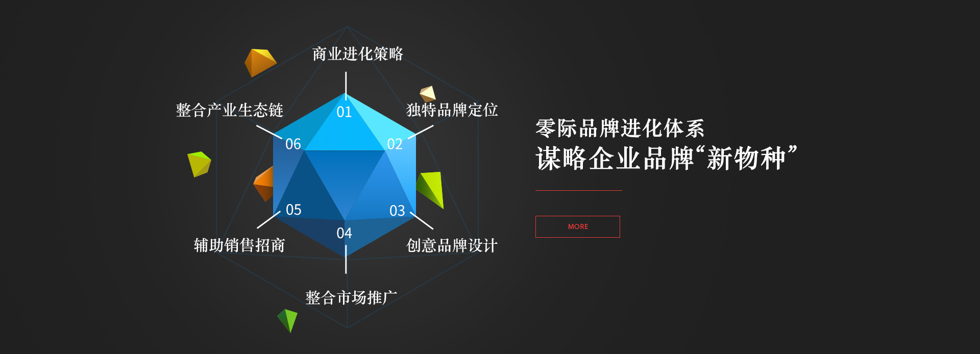 我们坚信“人类前行的能力,源于智慧进化的力量”。零际品牌营销机构根据每一个企业客观实际情况,通过科学全面的市场调研诊断、品牌策略、超级创意、敏锐设计、营销策略、品牌传播、助力销售等建立一套完善的品牌生态价值体系,用高效可行的执行力帮助品牌开启进化。